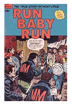 An earlier version of a Run Baby Run comic was released in 1971 by Logos and the David C. Cook Publishing Co. It was prepared by Cook as a "special edition" of their "Bible-in-Life PIX" by arrangement with Logos, who were the publishers of the original Nicky Cruz book. This Run Baby Run comic was 32 pages with a paper self-cover and full mechanical color throughout. According to the "Who's Who of American Comic Books" web site, Run Baby Run was pencilled and inked by Al Stenzel. His company, Stenzel Production, packaged Cook's "PIX" publication for a number of years. Run Baby Run was later reprinted in black-and-white in issue #51 of the French comic magazine Tournesol in 1976. (If you include the Spire Comic title The Cross & the Switchblade as a "Nicky Cruz comic," too, then Mr. Cruz has had three separate Christian comics produced about him, which may be a record for different versions of a Christian comic book about a person who doesn't appear in the Bible originally!) |