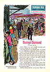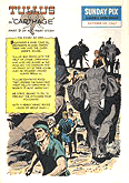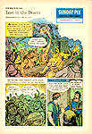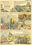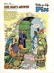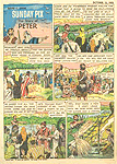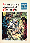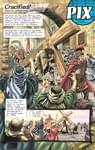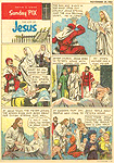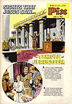 Editorial notes of interest: - Most years/issues in the '50s/early '60s include the "Our Bible in Pictures" series. Andre LeBlanc is usually remembered as the only artist of Cook's Bible comics, but the earliest comics were actually drawn by Joseph Wirt Tillotson, a commercial artist and painter of pulp magazine covers from the late 1930s to the early 1950s. Also, the original writer on the Bible stories in PIX was the Rev. David S. Piper, a graduate of McCormick Theological Seminary. - During 1960, Sunday PIX featured the late Dr. Paul (" Jungle Doctor ") White in a piece entitled "Medic of the Jungle." - Many of the PIX comics were reprinted in the French comic magazine Tournesol in the 1970s and 80s. - Until sometime in the '60s (1964?) PIX contained all new material. For many years, there has been very little original material according to fans and collectors of the series. - It has been stated that PIX has had the longest issue run of any American comic book (and any Christian comic book) with almost 3000 weekly issues since its beginning. However a number of issues from the 1990s onward have contained very few comics pages, so it has been debatable whether PIX could still be called a "comic" today. - Over 65 million PIX, used in the Cook curriculum, have been distributed, according to Ralph Gates, Director of Cook Communications Ministries International, in May 2001. Other technical information: - For much of its original run PIX was a newsprint comic. Newer issues have been printed on higher quality paper. - Issues of PIX have averaged 12 pages, but vary between 8-16 pages of comics and illustrated text features. - The dimensions of the Cook papers have changed several times. The earliest copies of Cook's papers (probably the same size since the early 1900s or earlier) were approximately 11" x 13" and stayed that size through March 25, 1945, when they were reduced to 8.5" x 11.5" to save paper for the war effort (Early "shrunken" issues even carried a note of explanation). Three Cook papers (What to Do, Boys' World and Girls' Companion) were incorporated into one (Sunday PIX) in May 1949, but continued in the same size until some time in mid-1954. Many (most?) issues were 7"x10." PIX is currently 5.5" x 8.5". Return to Main "Notable Christian Comics" Page